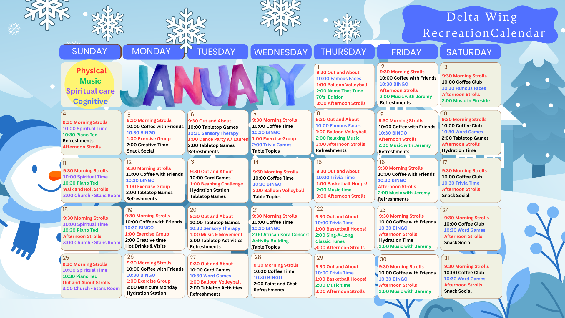 Also, if you have information that you think would be especially meaningful to our honored residents or you know of an event that we could participate in, please contact our Recreation Director.