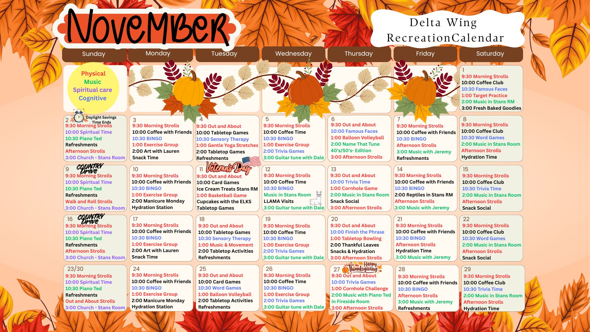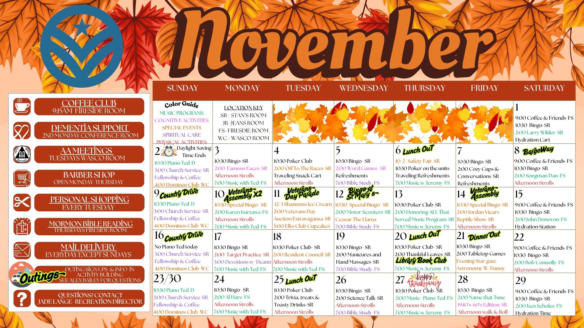 Also, if you have information that you think would be especially meaningful to our honored residents or you know of an event that we could participate in, please contact our Activities Director.