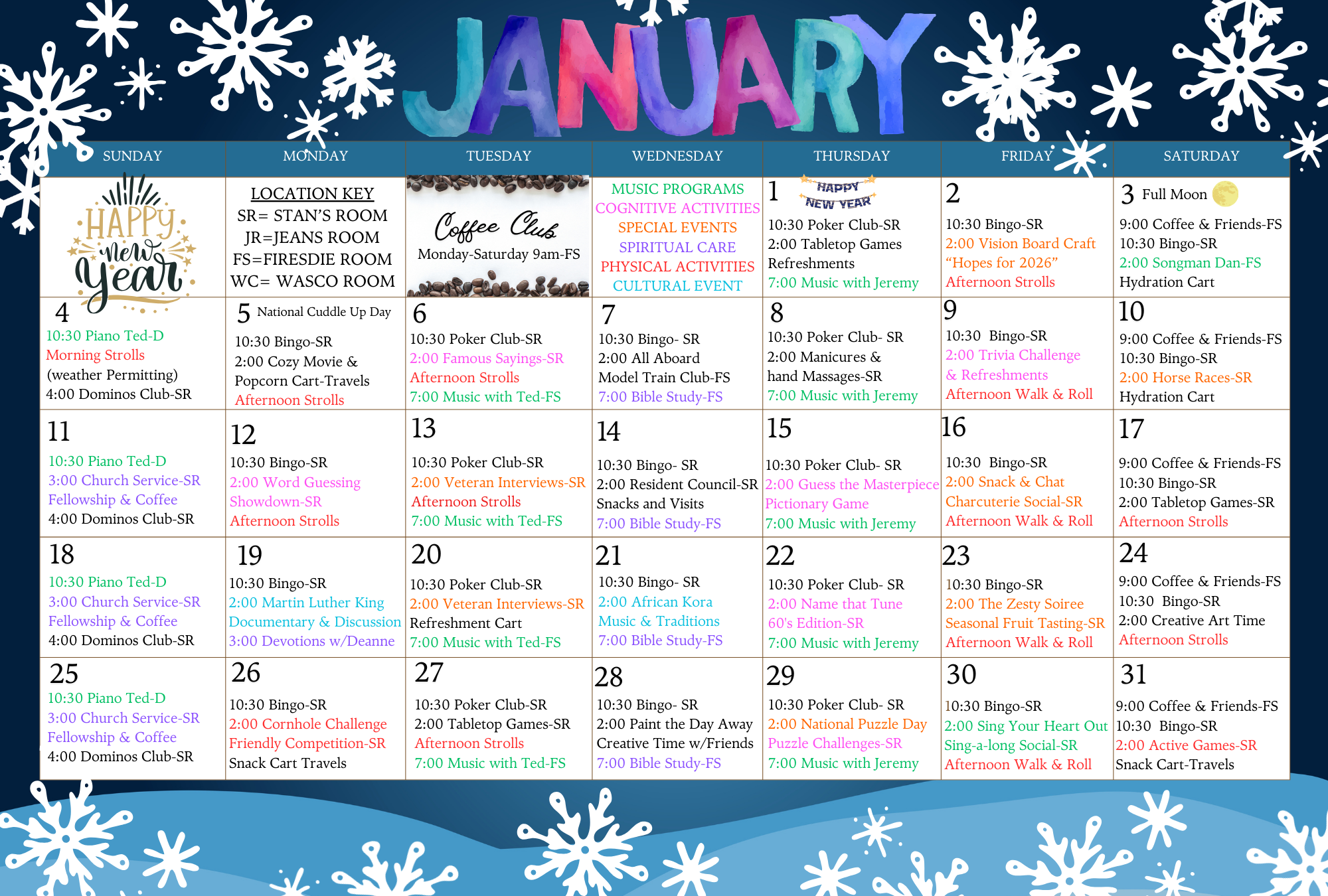 Also, if you have information that you think would be especially meaningful to our honored residents or you know of an event that we could participate in, please contact our Activities Director.