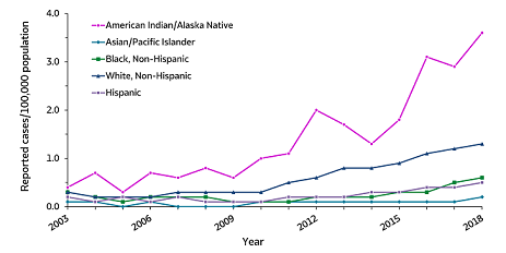 Rates of reported acute hepatitis C, by race and ethnicity — United States,