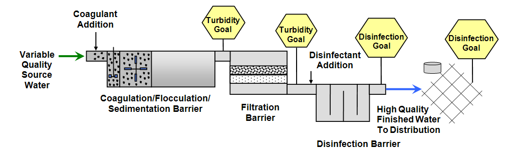 multiple barrier approach to protect against these contaminants and prevent waterborne disease outbreaks. For more information and a table of recommended optimization goals, read about Area Wide Optimization below.