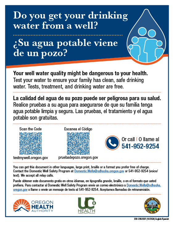Community and agency partners can find a variety of resources to support in outreach efforts on this page. Please reach out to the Domestic Well Safety Program Coordinator at domestic.wells@odhsoha.oregon.gov if you have questions or need any support accessing these materials. We are happy to provide alternative formats upon request.
