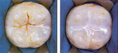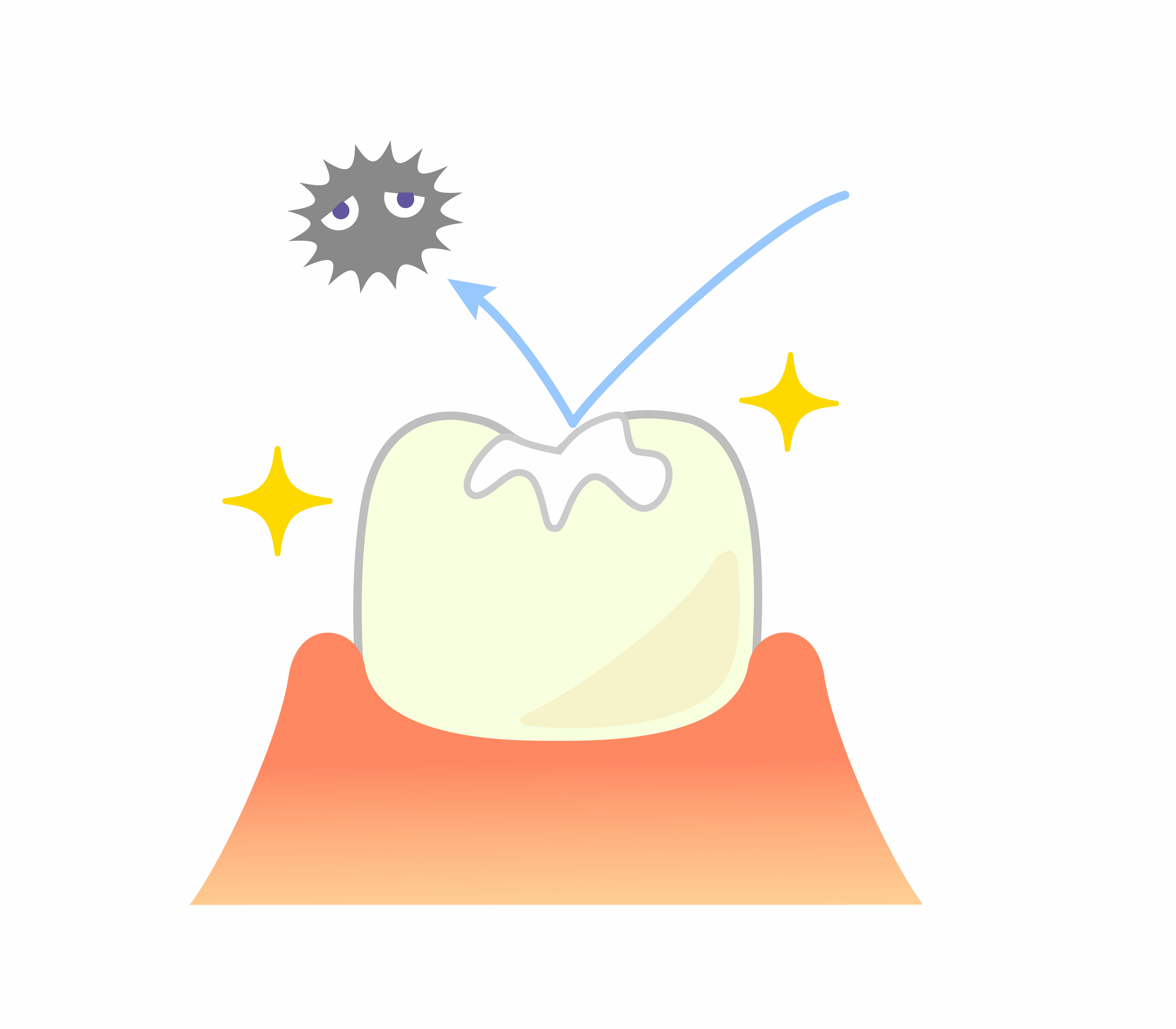 A dental sealant is a liquid coating applied to the chewing surfaces of the molars (back teeth) to prevent cavities. The coating flows into the deep pits and grooves of the tooth “sealant out" the bacteria and food debris that cause cavities.