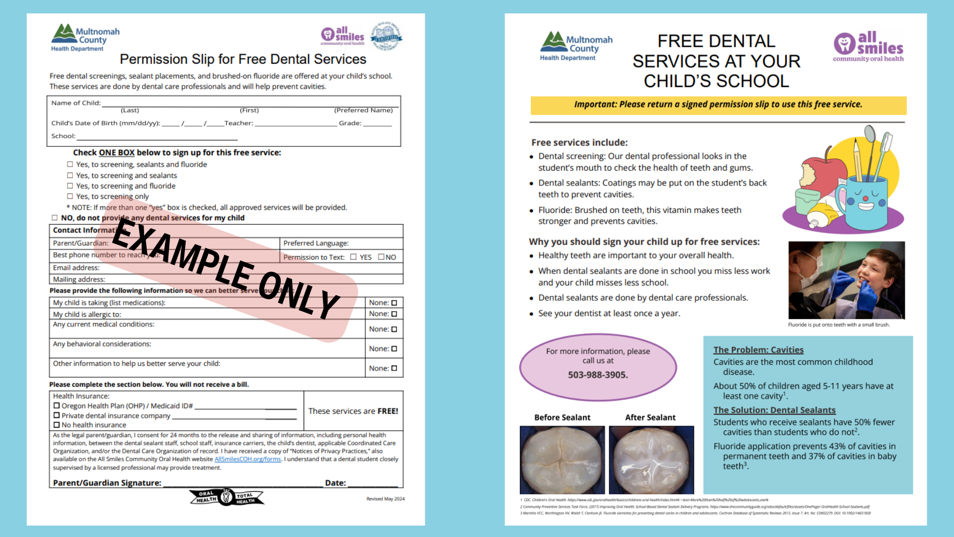• Ask your school for a permission form if they have a school dental sealant program visiting your student's school.