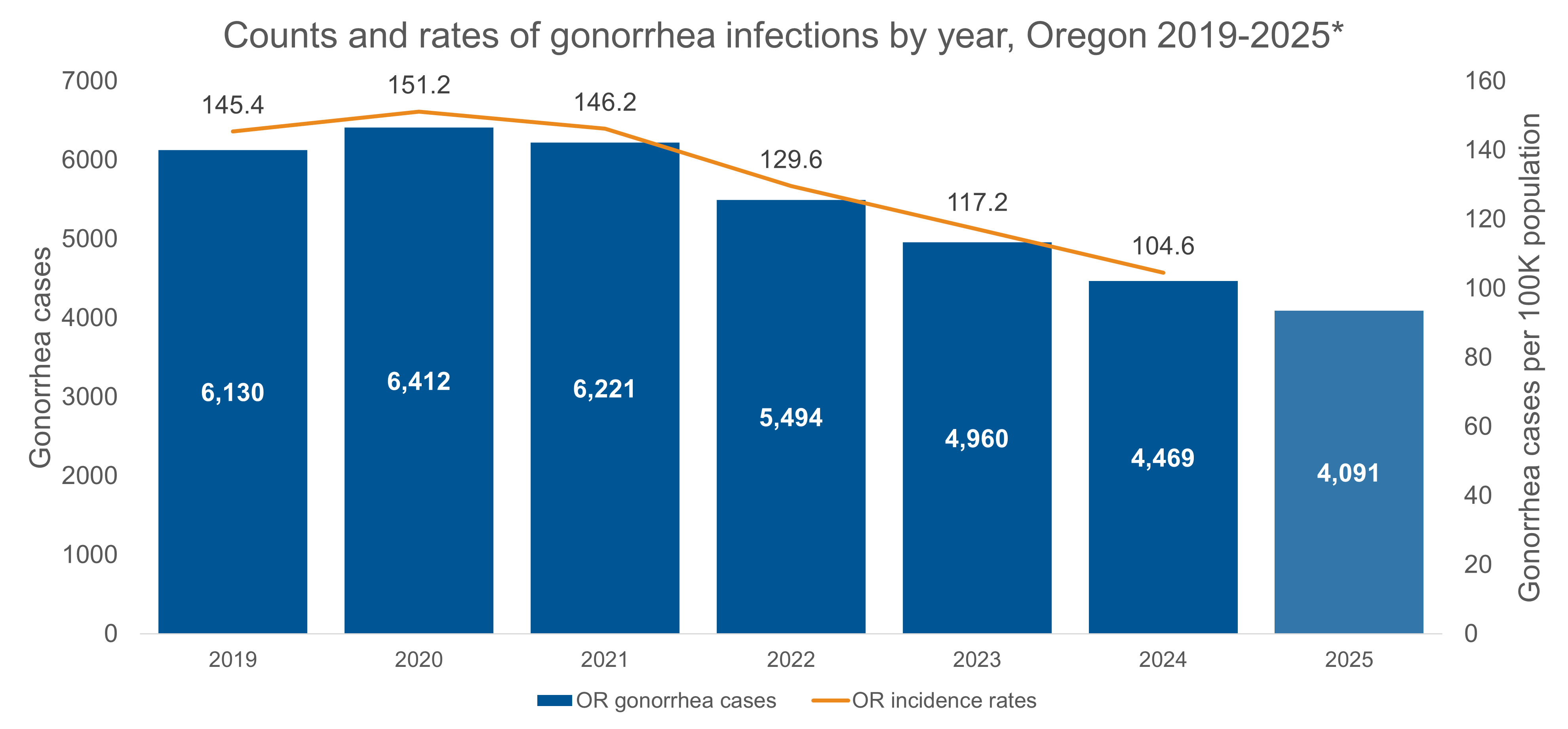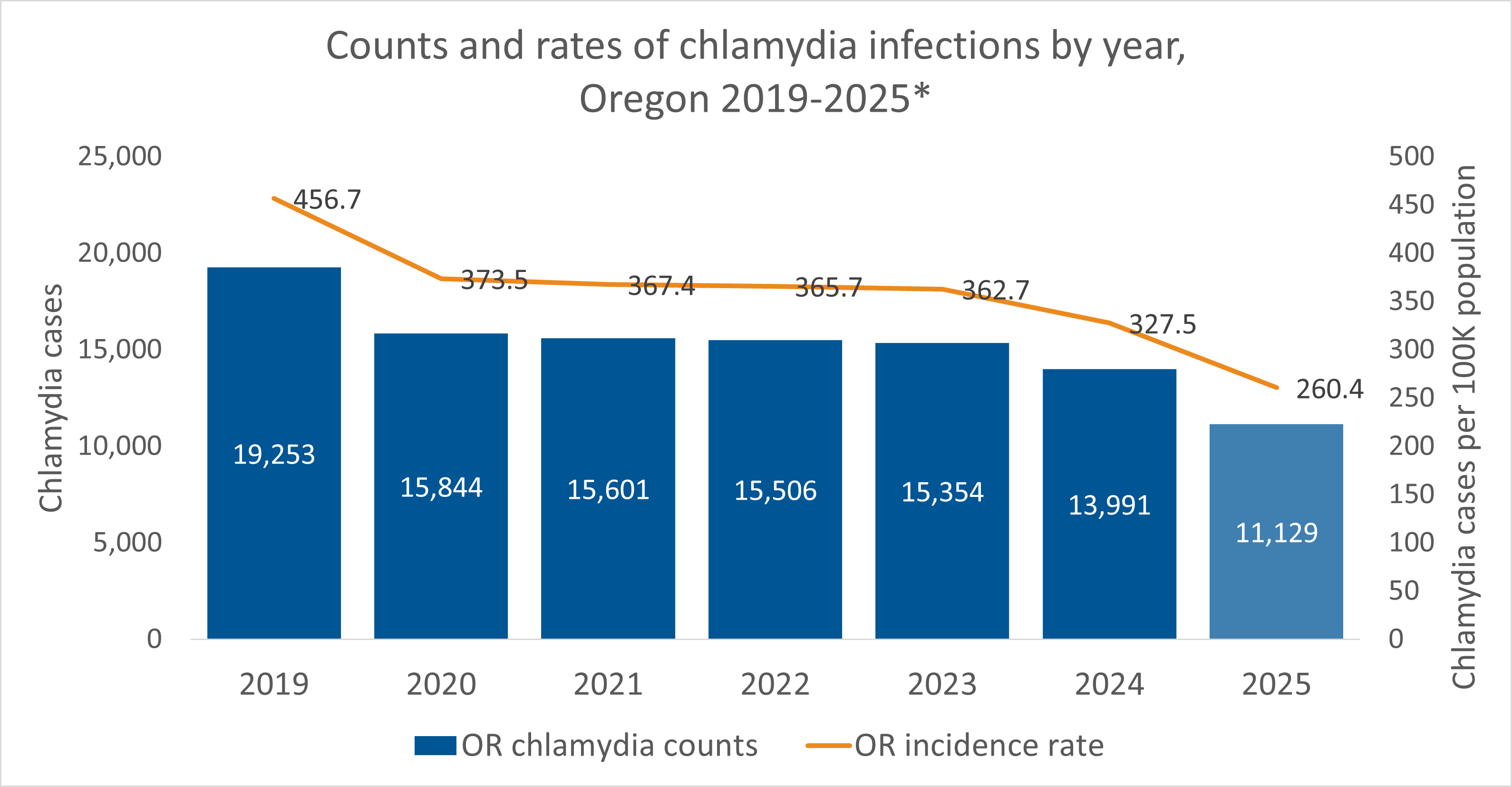 Rates of STI Infection in Oregon by Year, 2019-2025