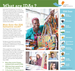For over 20 years, Oregonians with lower incomes have used Individual Development Accounts (IDAs) to attain homeownership, further education, start small businesses, and achieve other asset-building and stabilization goals.