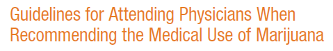 A clinical guidelines workgroup consisting of physicians from multiple specialties as well as a patient advocate created Guidelines for Attending Physicians when Recommending the Medical Use of Marijuana (available via the image below).