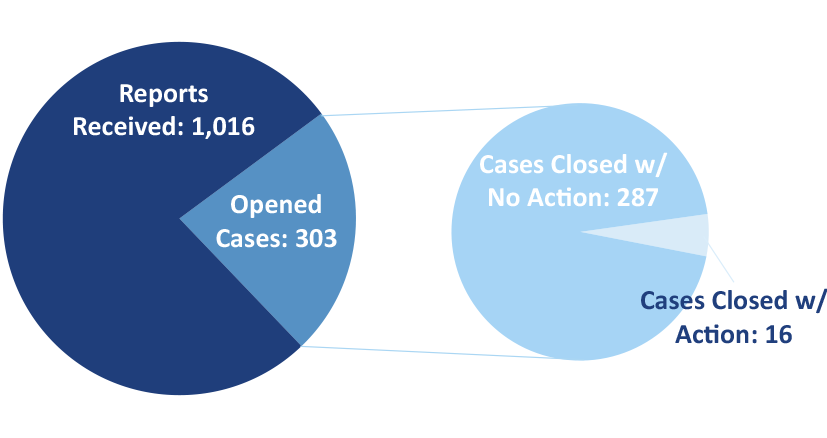 - Opened Investigative on 303 cases