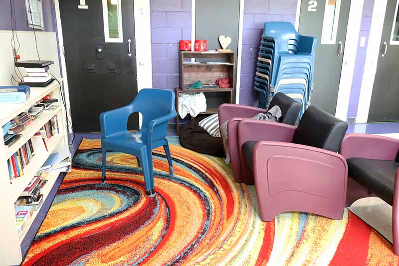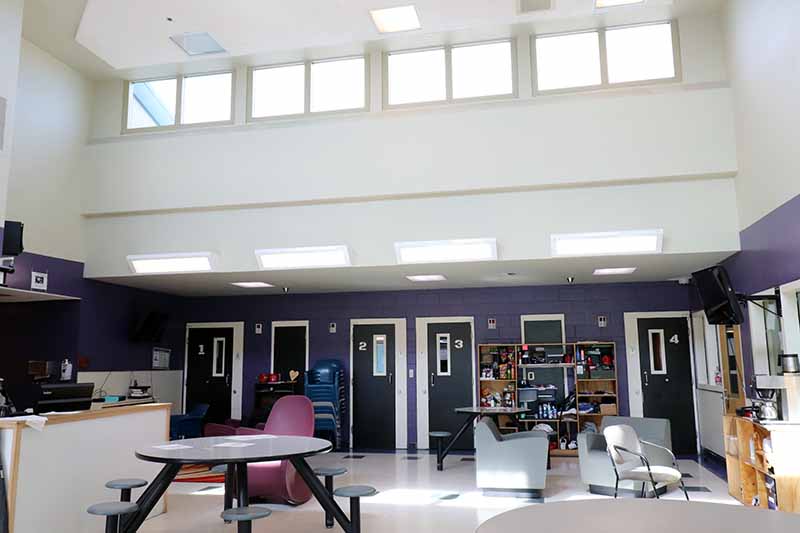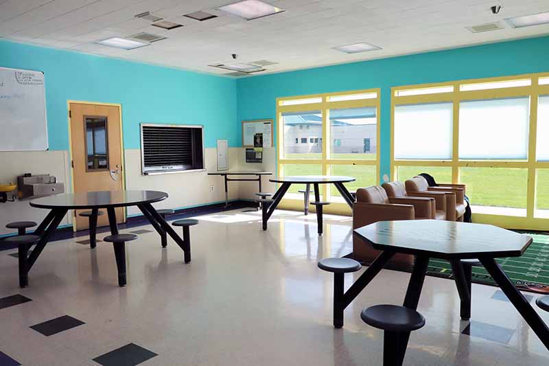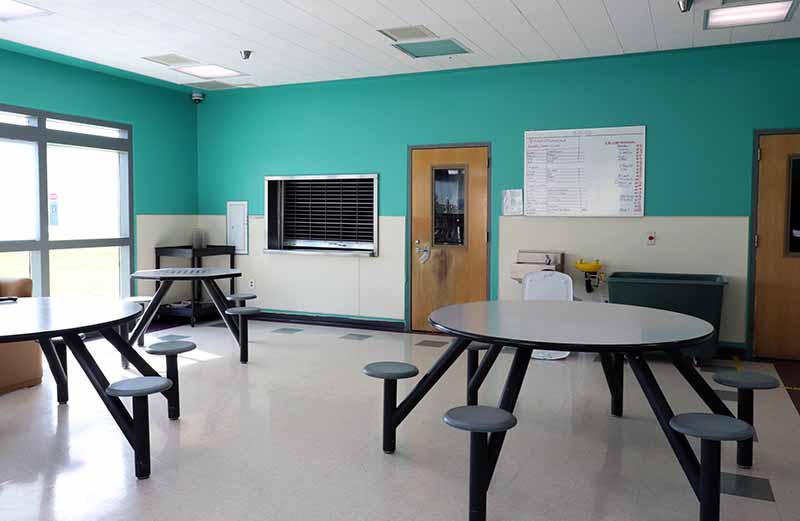 Each unit has a day room, a kitchen and dining area, an activity room for youth who have earned more privileges, and a shared sleeping room with 20 beds.