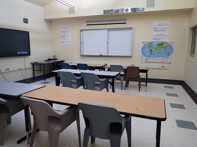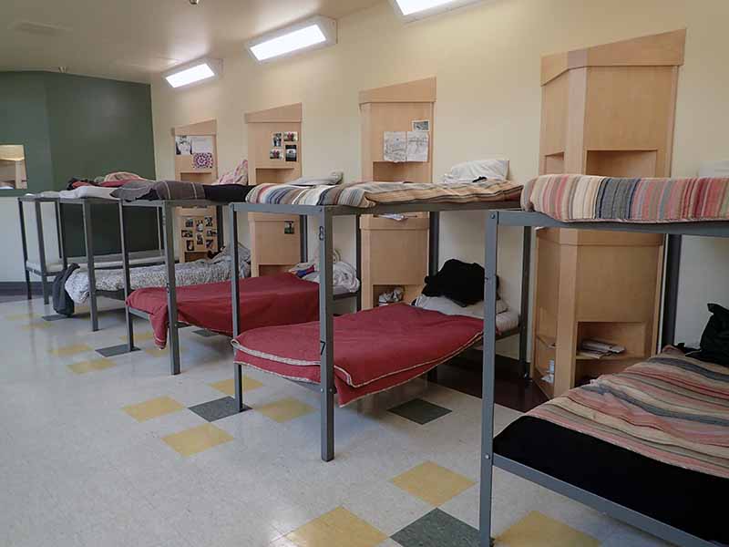 Each unit has a day room, a kitchen and dining area, a school classroom, and a shared sleeping room with 25 beds.