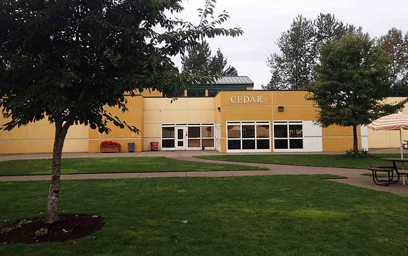 Oak Creek has two living units: Aspen and Cedar. The living units are next to a large outdoor courtyard.