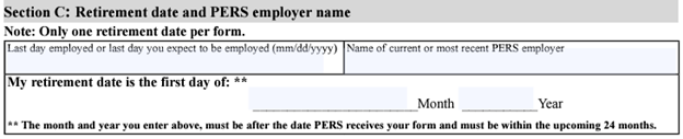 PERS retirements may only be on the first of a month. Hence, the form only asks for the month and year of the