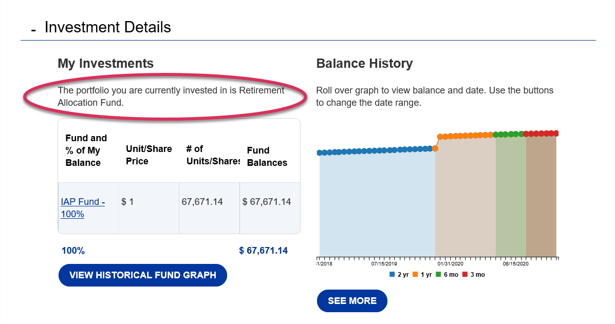 account, where it is identified as the “portfolio you are currently invested in” under “My Investments” on
