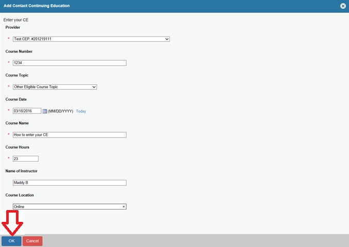 Step 17 The continuing education classes you have entered in eLicense for the last 3 years will display.
