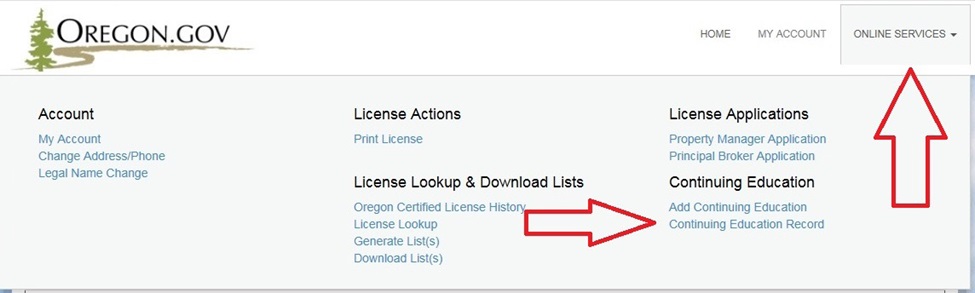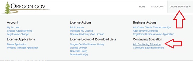 Step 4 Click the Online Services drop down menu and select "Add Continuing Education."