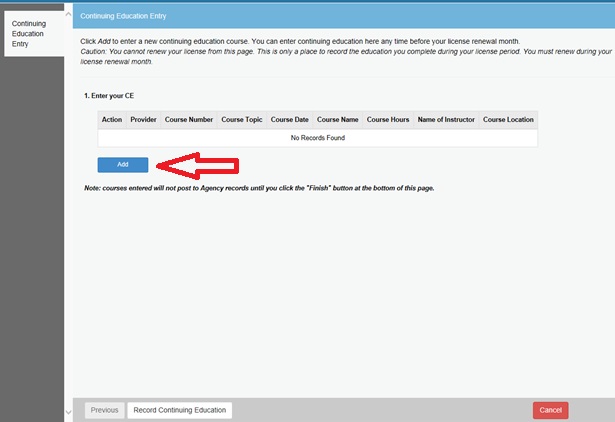Enter Your Continuing Education in eLicense in Non Renewal Months